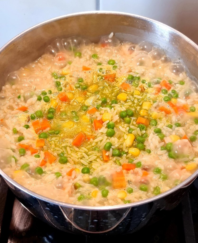 Das Beste ist, ich esse ja so gerne Paprika, aber mein Mann und Sohnemann nicht, die meckern dann immer, 😮💨😁 also mache ich einfach mehr Risotto und den können sie dann anstatt gefüllte Paprika essen 🤗😇😉. Und so sind wir alle glücklich!