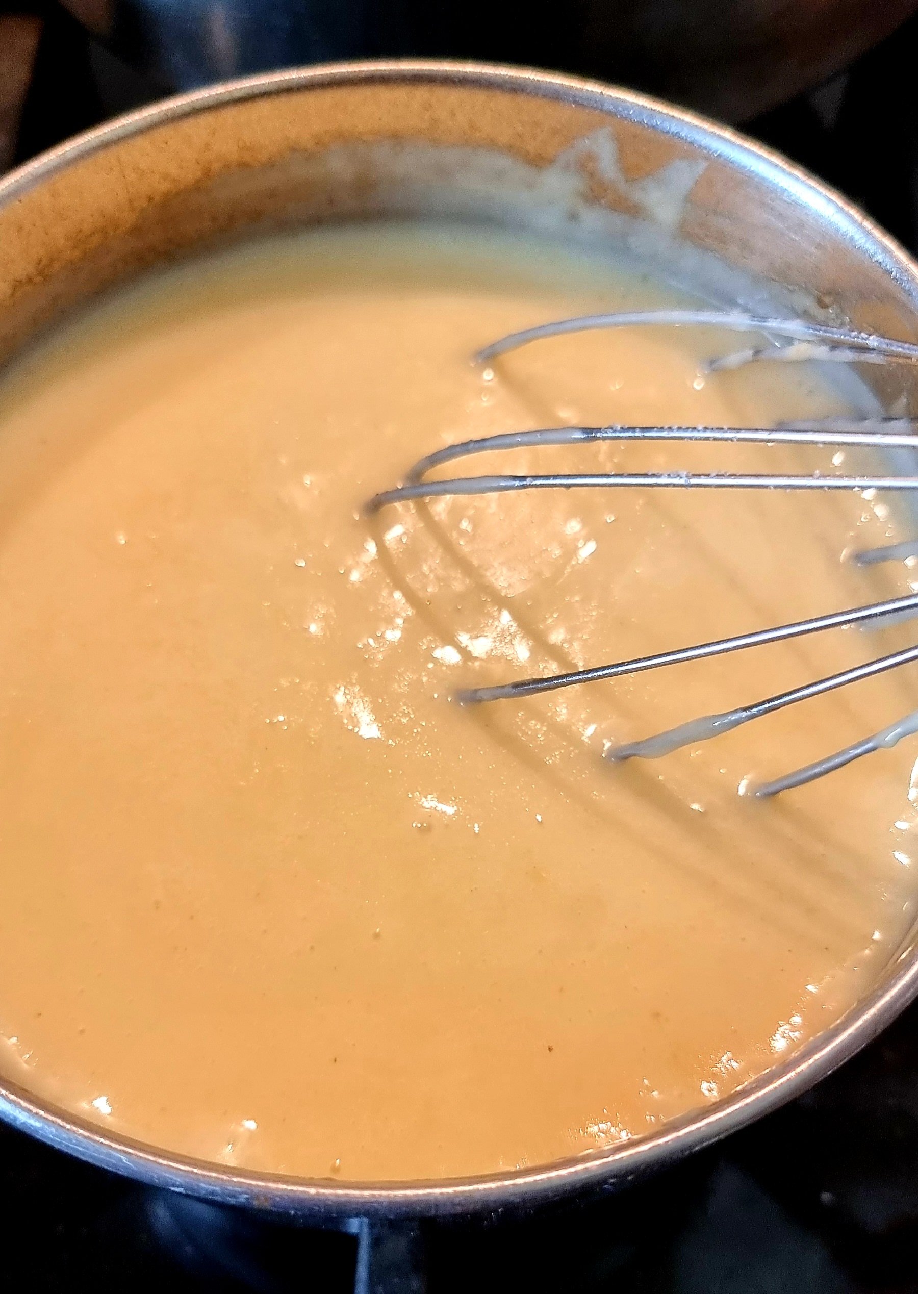 - in einem Topf etwas Butter ca. 2 EL zerlassen und dann 2 EL Mehl einrühren mit dem Sud ablöschen und rühren damit keine Klümpchen entstehen