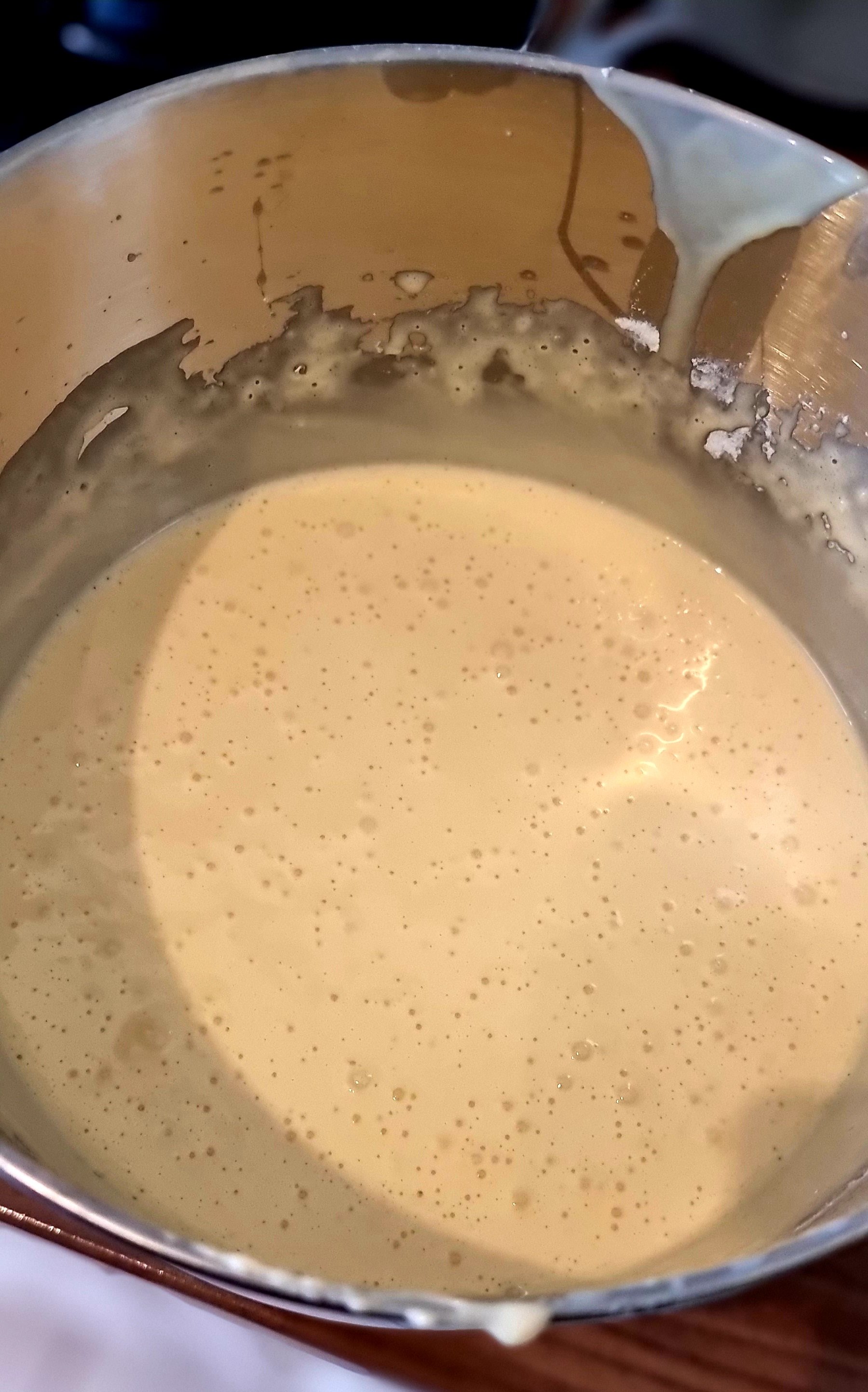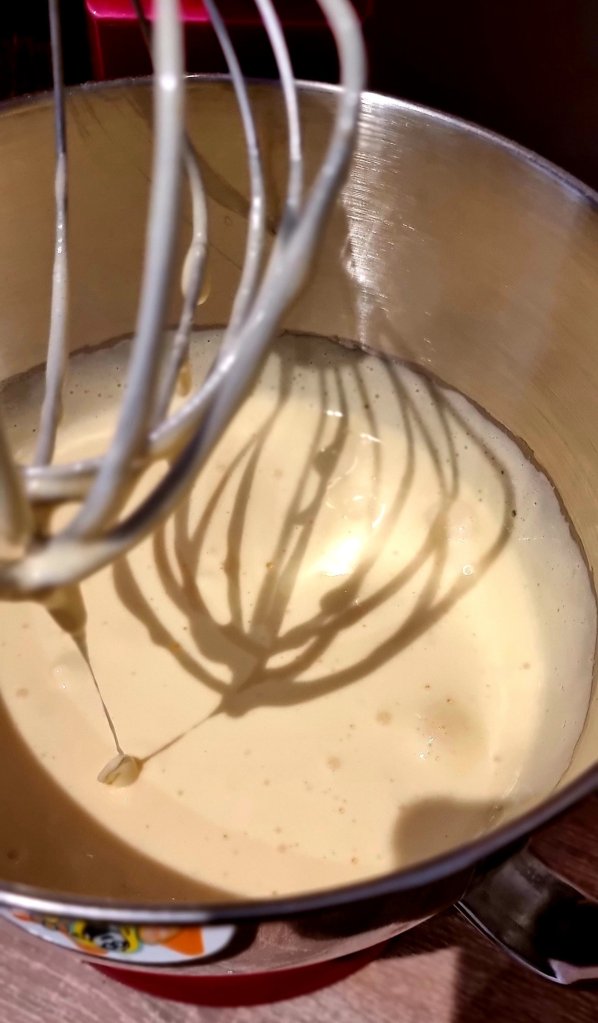 - Den Eierlikör langsam hinzugeben und weiterschlagen