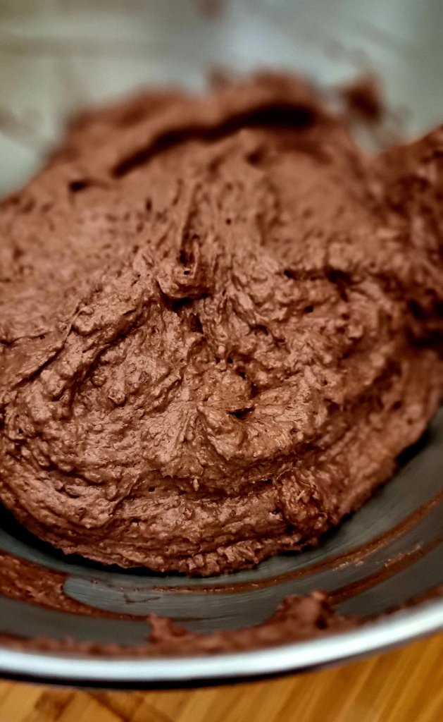 Mein Boden ist schön schokoladig und nussig. Außerdem ist es ein All-in-Teig, das heißt : abwiegen in die Schüssel damit und alle Zutaten miteinander vermengen – fertig 🥳💪.
