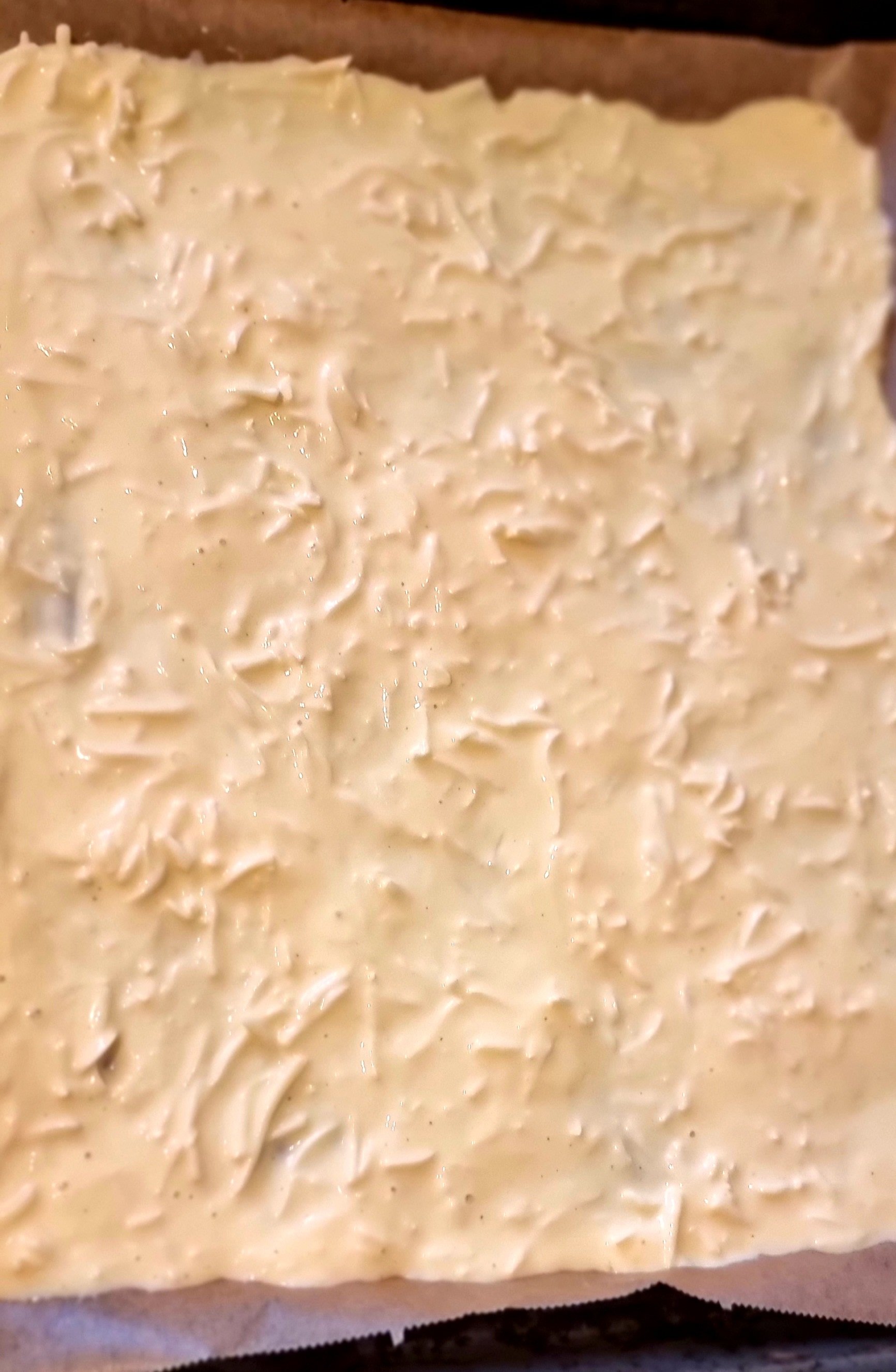 Wenn der Boden gold/braun gebacken ist aus dem Ofen nehmen. Ich nehme noch ein Blatt Backpapier lege es auf dem Boden und wende ihn. Jetzt den Boden etwas abkühlen lassen so 5 Minuten reichen. Nun vorsichtig das Backpapier abziehen.