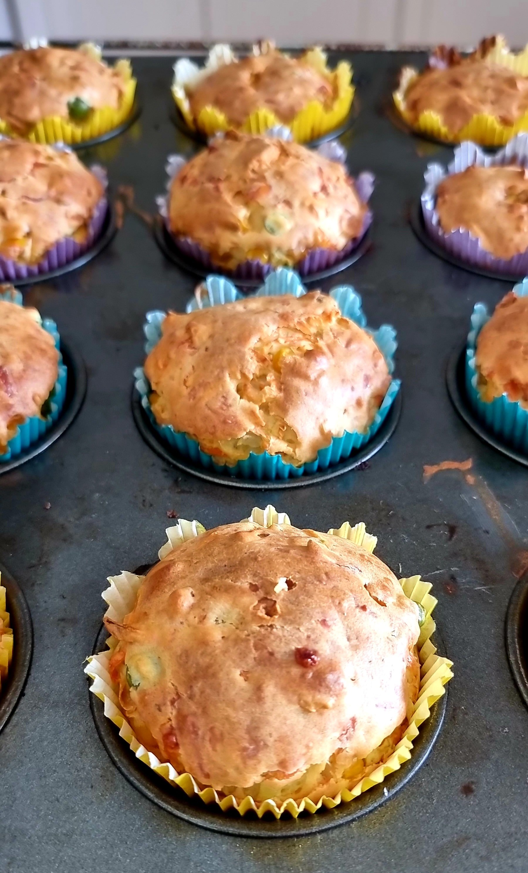 Ihr könnt die Muffins bevor sie in den Ofen gehen noch mit Käse bestreuen. Auch sehr lecker 😋!!