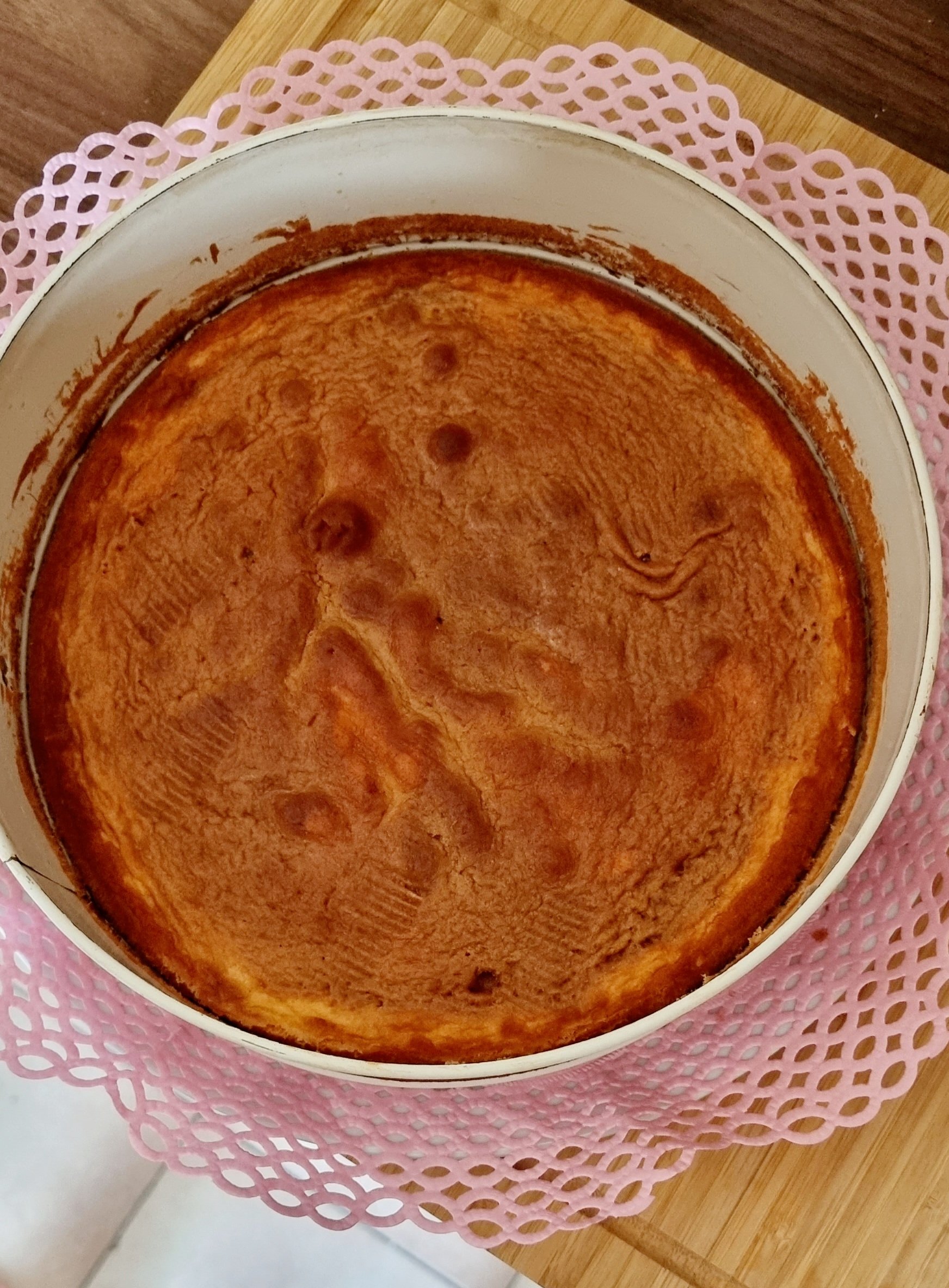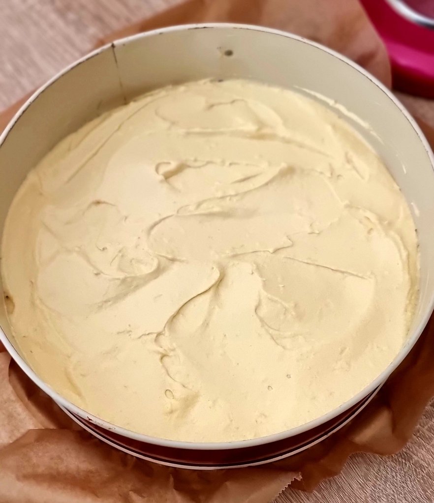 - Den Teig in die Springform geben und glatt streichen