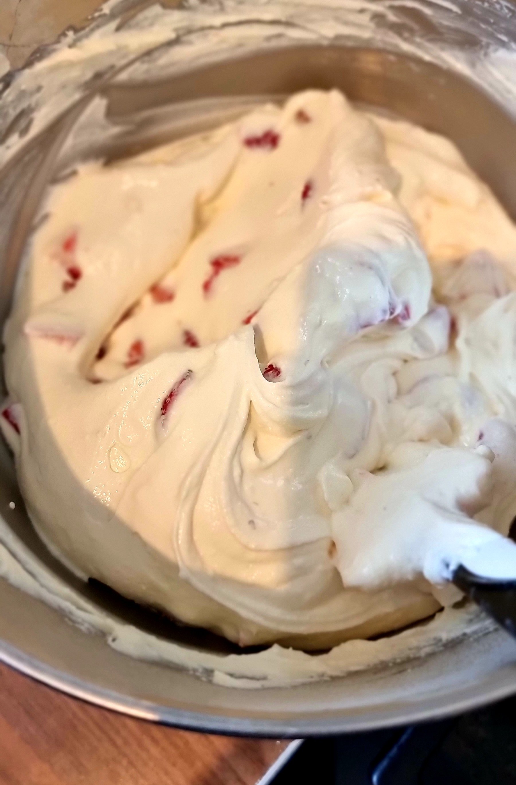 - Sahne und die Erdbeeren und der Mascarpone Masse heben