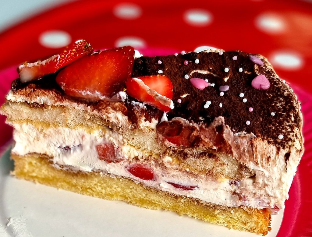 Die ist auch perfekt als Geburtstagstorte oder für Sonntags. Diese Version ist aber nicht Kinderfreundlich, weil sie Kaffee und Alkohol enthält. Die Sachen könnt ihr natürlich leicht ersetzen und die kleinen können dann mitessen. Ich habe einfach eine kleine Version der Torte für die Kids gemacht. Ersetzt habe ich den Kaffee mit Milch. Man könnte aber auch Orangensaft mit pürierten Erdbeeren nehmen, oder Kakao. Den Alkohol könnt ihr einfach weglassen oder mit Orangenaroma arbeiten.