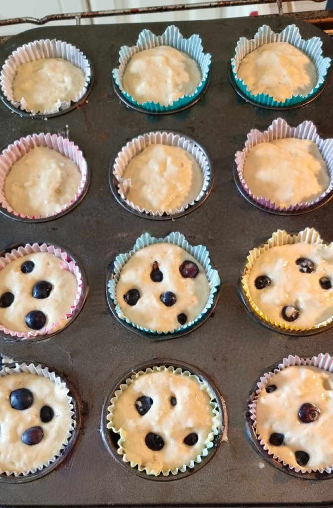 Ich backe sie gerne mit unserem Großen zusammen, der hat so viel Spaß beim rühren und matchen der Bananen 😁. Ach bevor ich es vergesse die Muffins sind viel „feuchter“ durch die Bananen… das ist ganz normal.