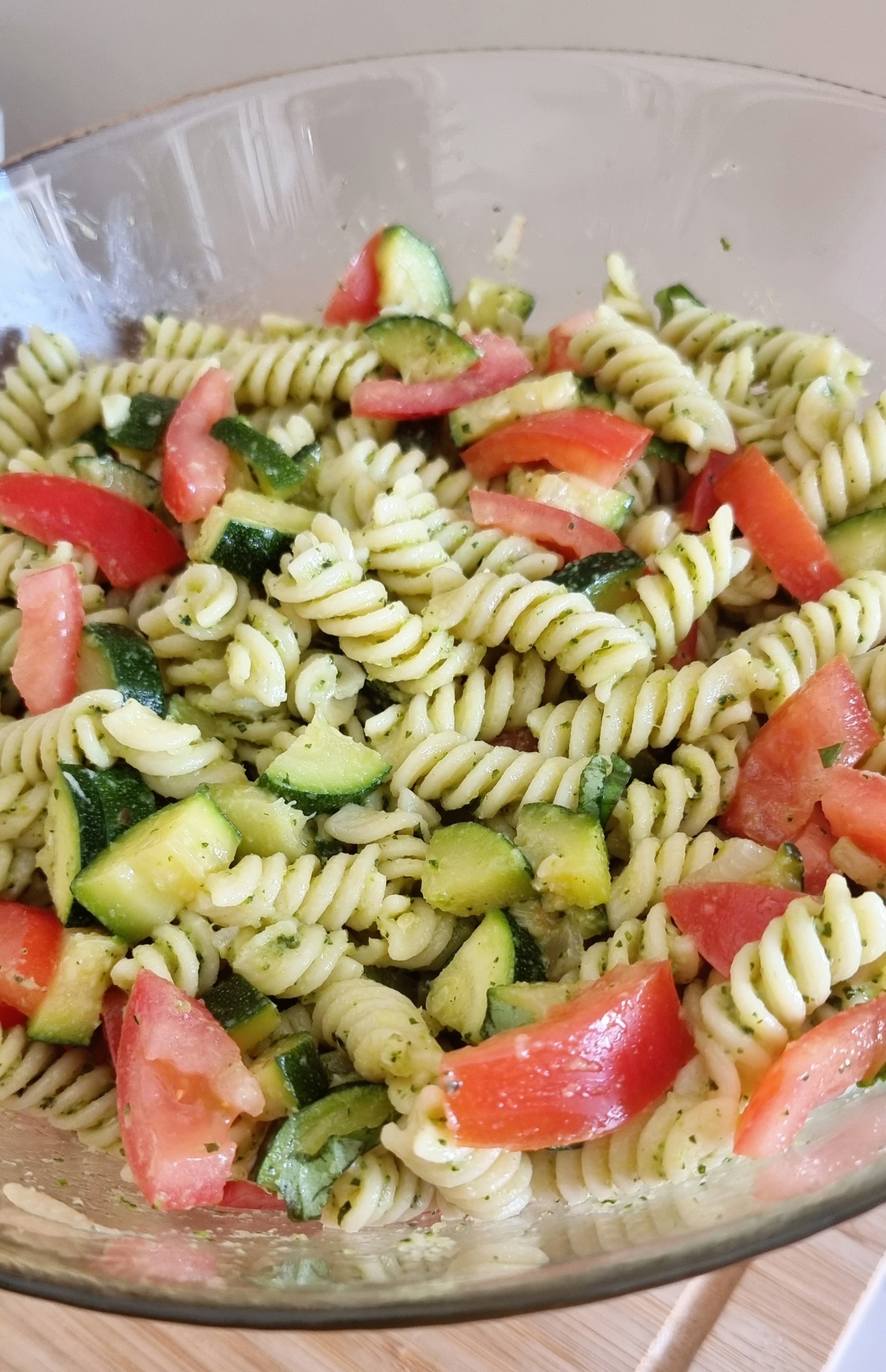 Nudelsalat essen wir gerne, 😁😋 denn Nudeln gehen immer oder? Naja ich muss zugeben, den klassischen Nudelsalat mit Fleischwurst und viel Mayo esse ich persönlich am liebsten😁😁🙈! Dieser Nudelsalat kommt hingegen ganz ohne Mayo und Fleisch aus. Dafür mache ich einen leckeren Pesto mit Zucchini und Basilikum 😋😍!