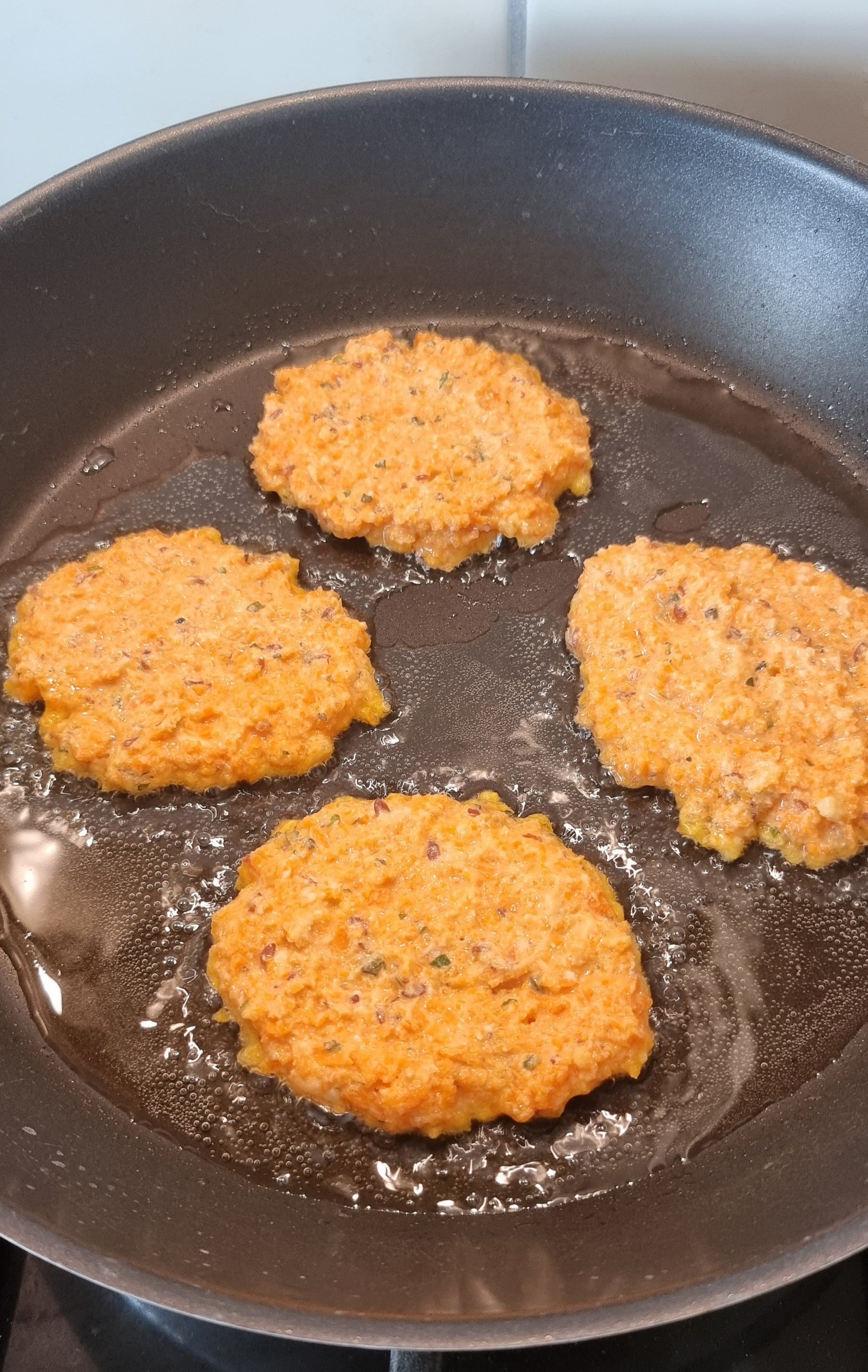 - Etwas Öl in einer Pfanne geben und kleine Küchlein ausbacken