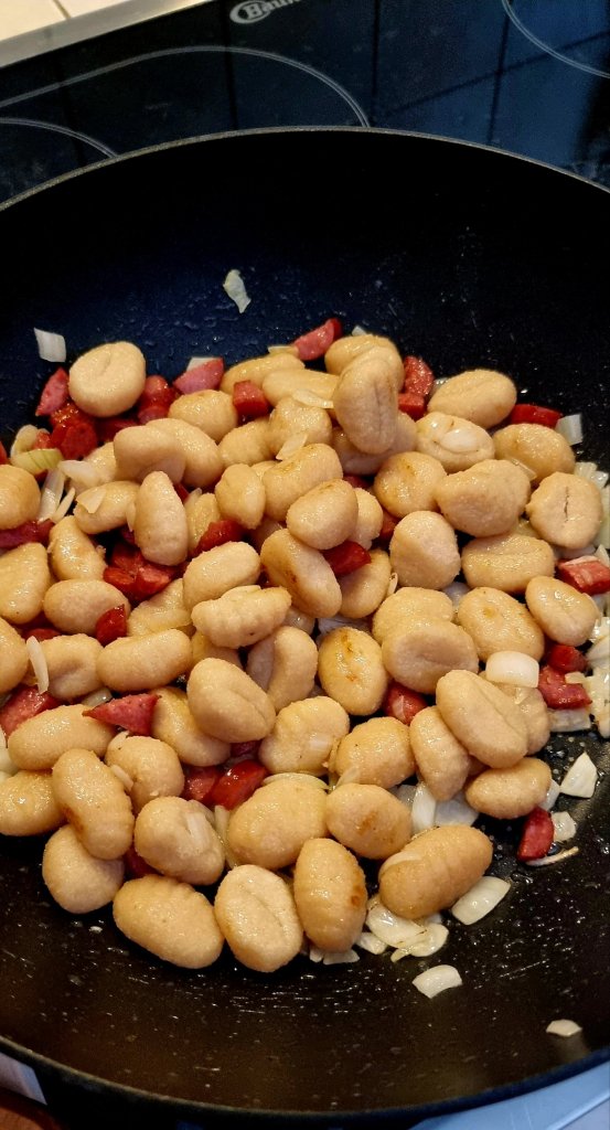 Die Gnocchi dazu geben – in meinem Fall brauchen sie nicht vorgekocht werden