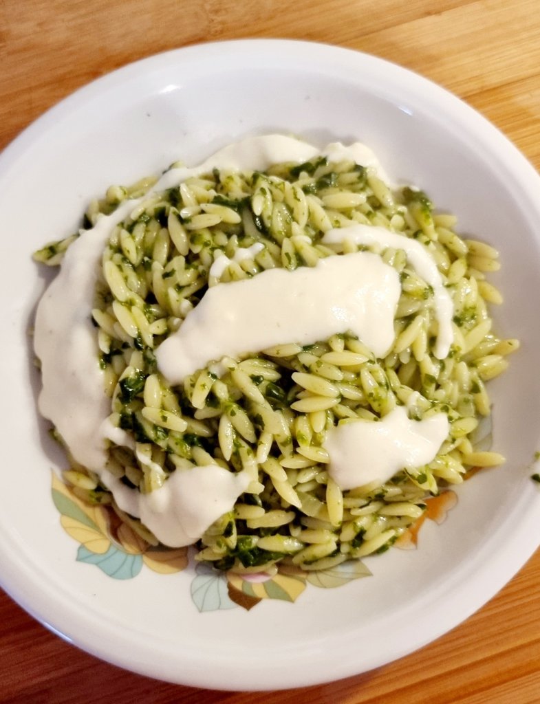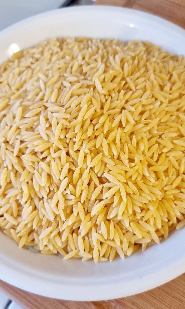 Hallo meine Lieben. Wünsche euch eine schöne Restwoche. Heute habe ich ein super einfaches und schnelles Rezept für euch. Ihr braucht wenig Zutaten und es schmeckt köstlich. Das kann ich euch versichern. Für dieses Rezept habe ich Kritharaki benutzt, auch griechische Nudeln oder Nudelreis genannt. In Italien haben wir ähnliche Nudeln, die heißen Risi oder Risoni, sie sind nur etwas kleiner.