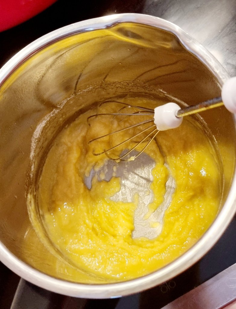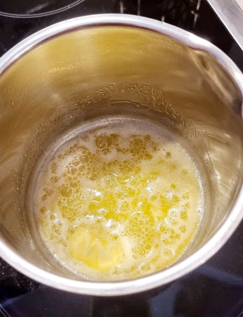 Während die Pasta kocht bereiten wir die Parmesancreme vor. Den Käse reiben und beiseite stellen. Die Butter in einem Topf schmelzen und das Mehl hinzufügen. Rühren bis sich die Butter und das Mehl sich verbinden. Nach und Nach die Milch hinzugeben und immer weiterrühren.