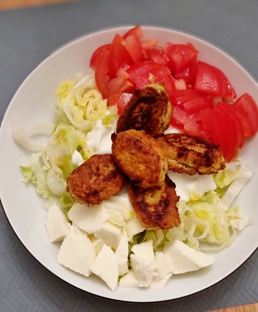 Die kleine Falafel gab es heute bei uns zum Salat 😋😍. Ich mache die Bratlinge aus Kichererbsenmehl, dadurch brauche ich keinen Mixer und die Falafel sind schnell zusammengerührt. 🥳 Das Mehl könnt ihr fast überall kaufen und ist auch nicht so teuer.