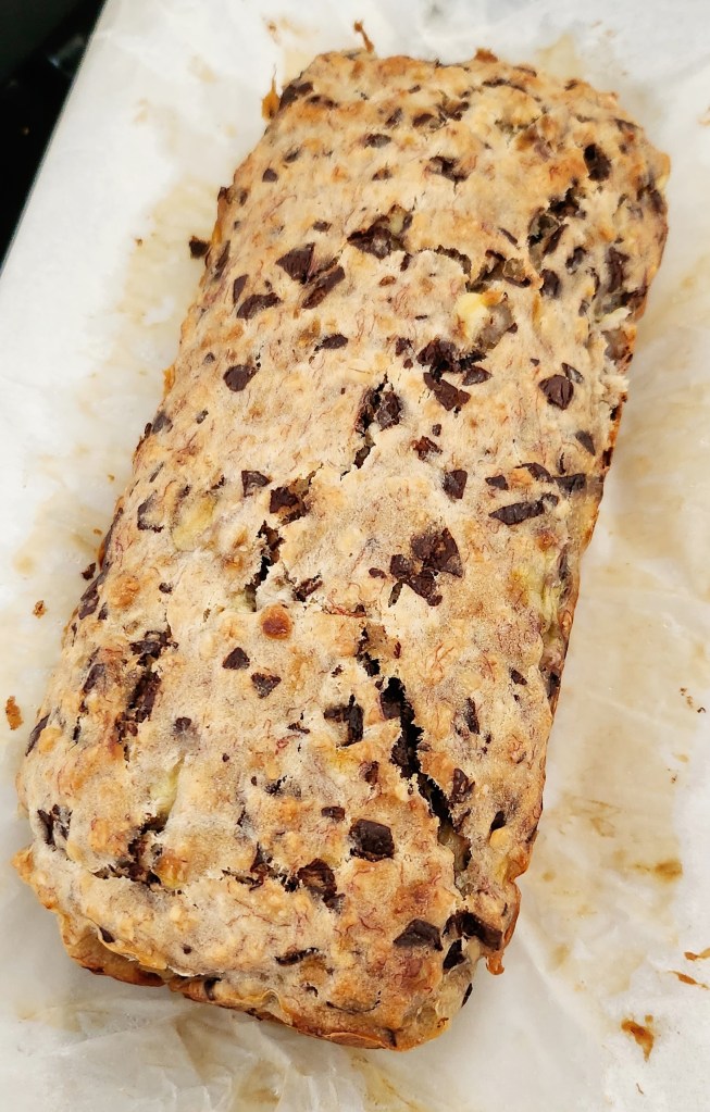 3 sehr reife Bananen | 200 g Weizenmehl | 100 g Haferflocken | 2 TL Backpulver | 70 ml Sonnenblumenöl | 70 ml Hafermilch | 100 g Schokoraspeln | 1 Prise Salz
