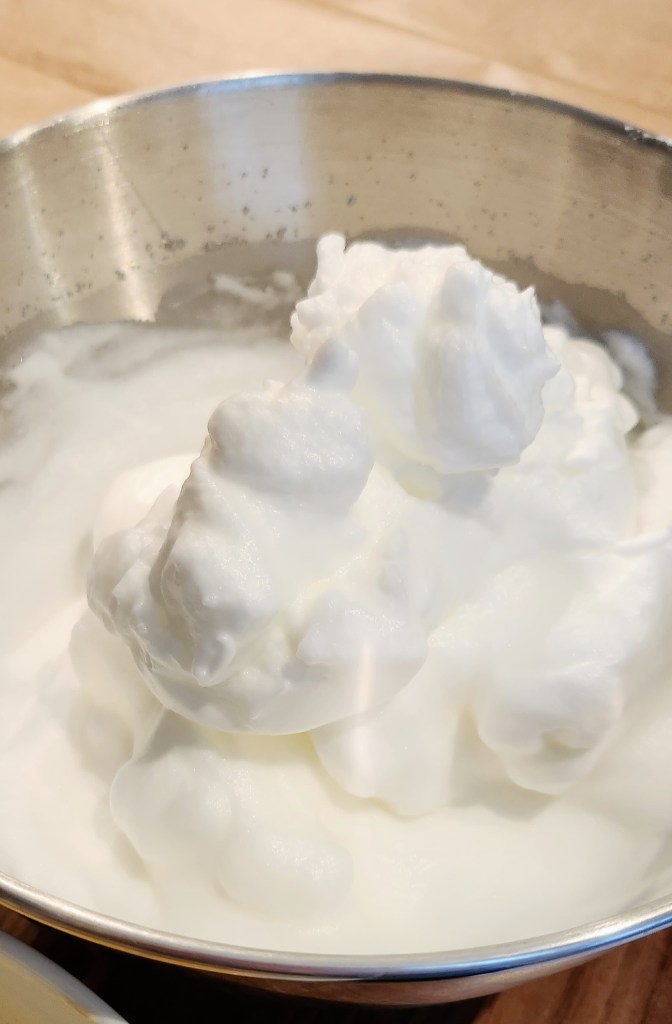 Die Eier trennen. Die Eiweiße mit einer Prise Salz sehr steif schlagen.