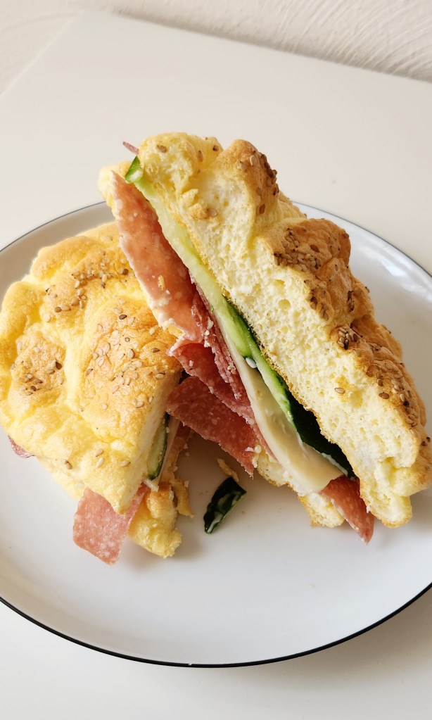 Die Brötchen schmecken absolut nicht wie „echte“ Brötchen. Sie erinnern eher einem Omelette… aber vor allem für Abends finde ich sie super. Man kann sie lecker mit Wurst, Salat oder was ihr am meisten mögt belegen. Oder man macht sich einen leckeren Burger, rein optisch würde ich sagen sind die Oopsies perfekt! 😉