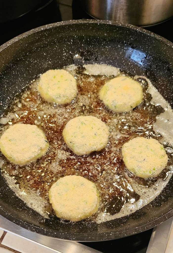 In einer Pfanne reichlich Öl erhitzen und die Frikadellen bei mittlerer Temperatur goldbraun braten!