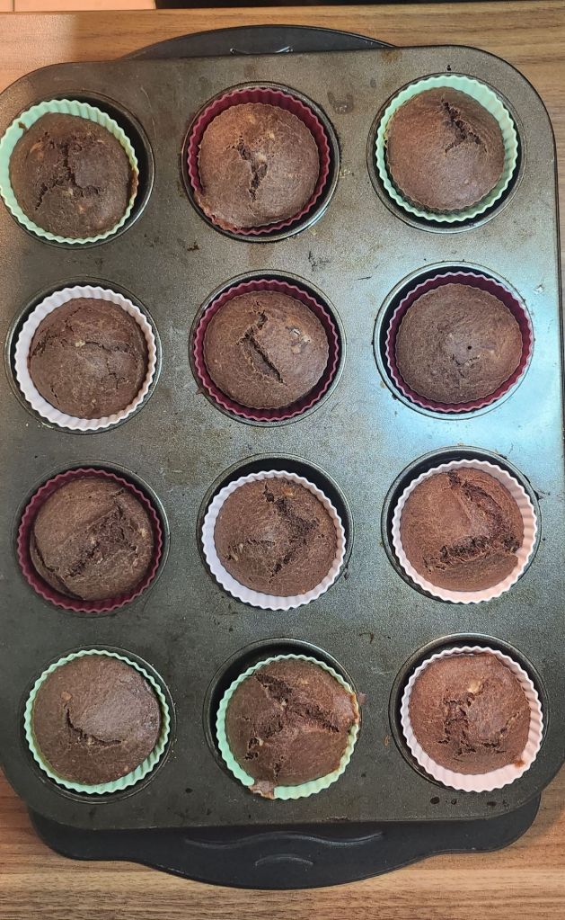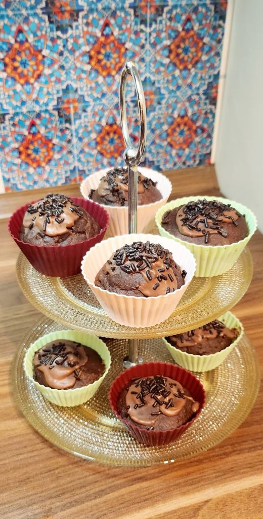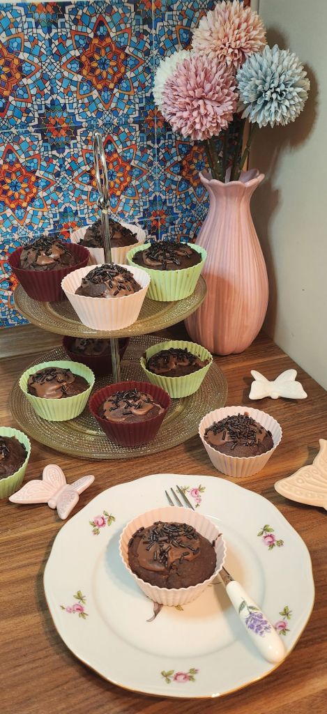 Den Teig in Muffinsförmchen geben ( ich habe die aus Silikon benutzt) und für ca. 20 Minuten backen. Macht die Stäbchenprobe.