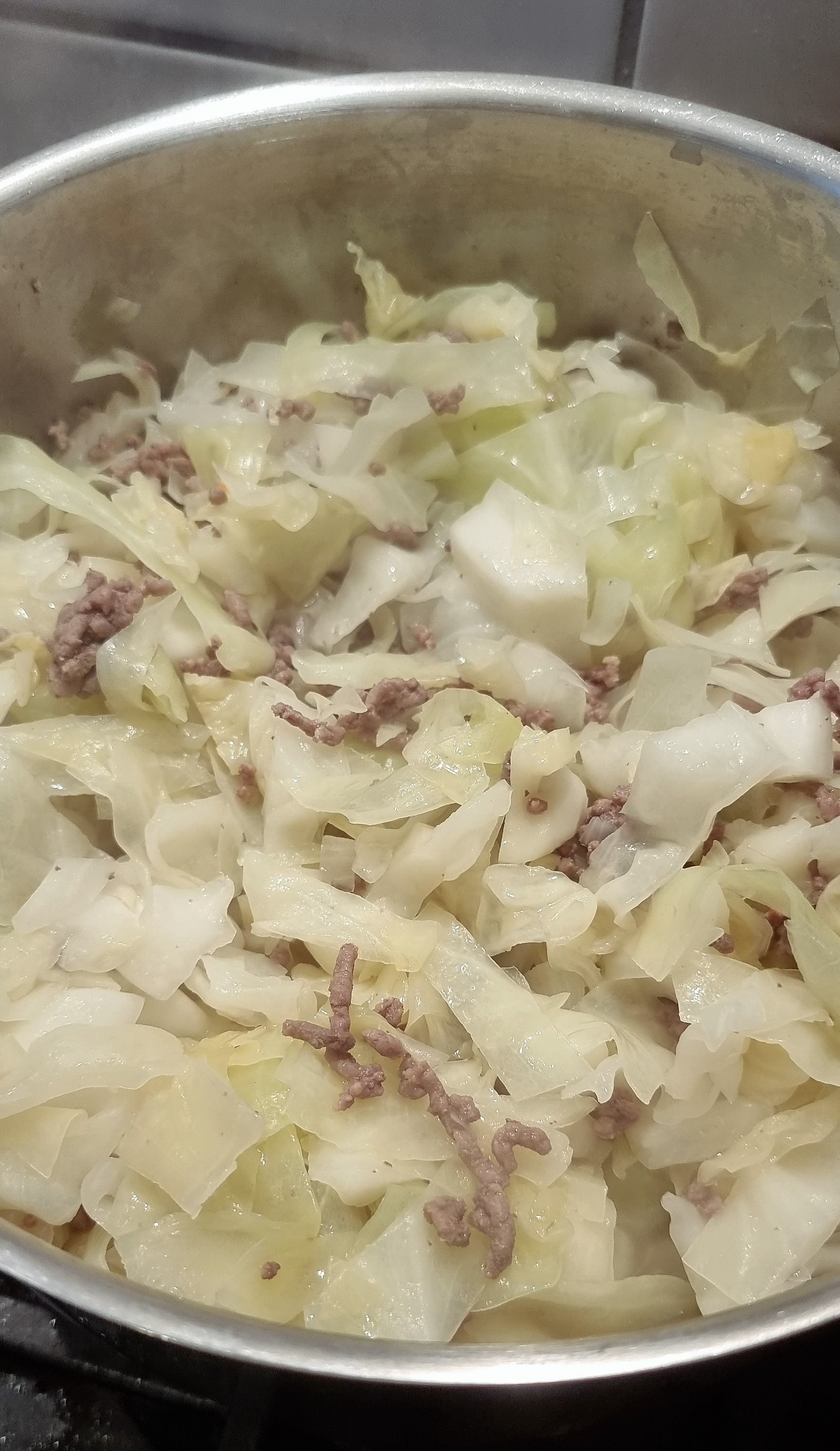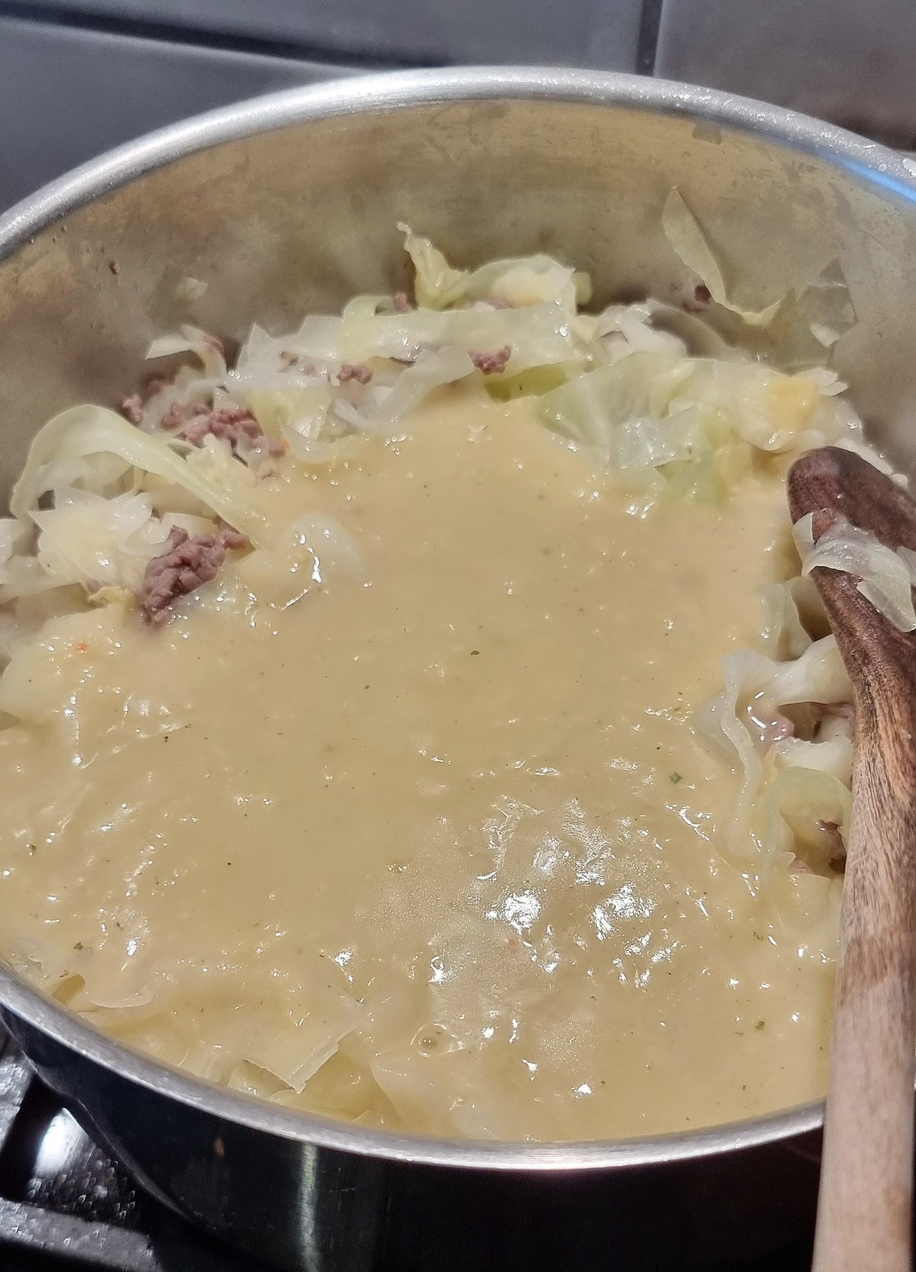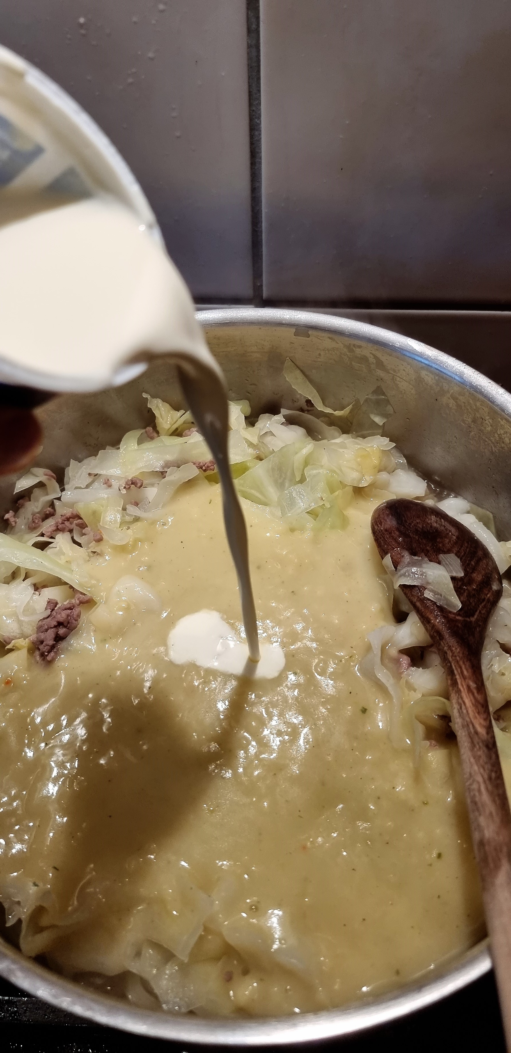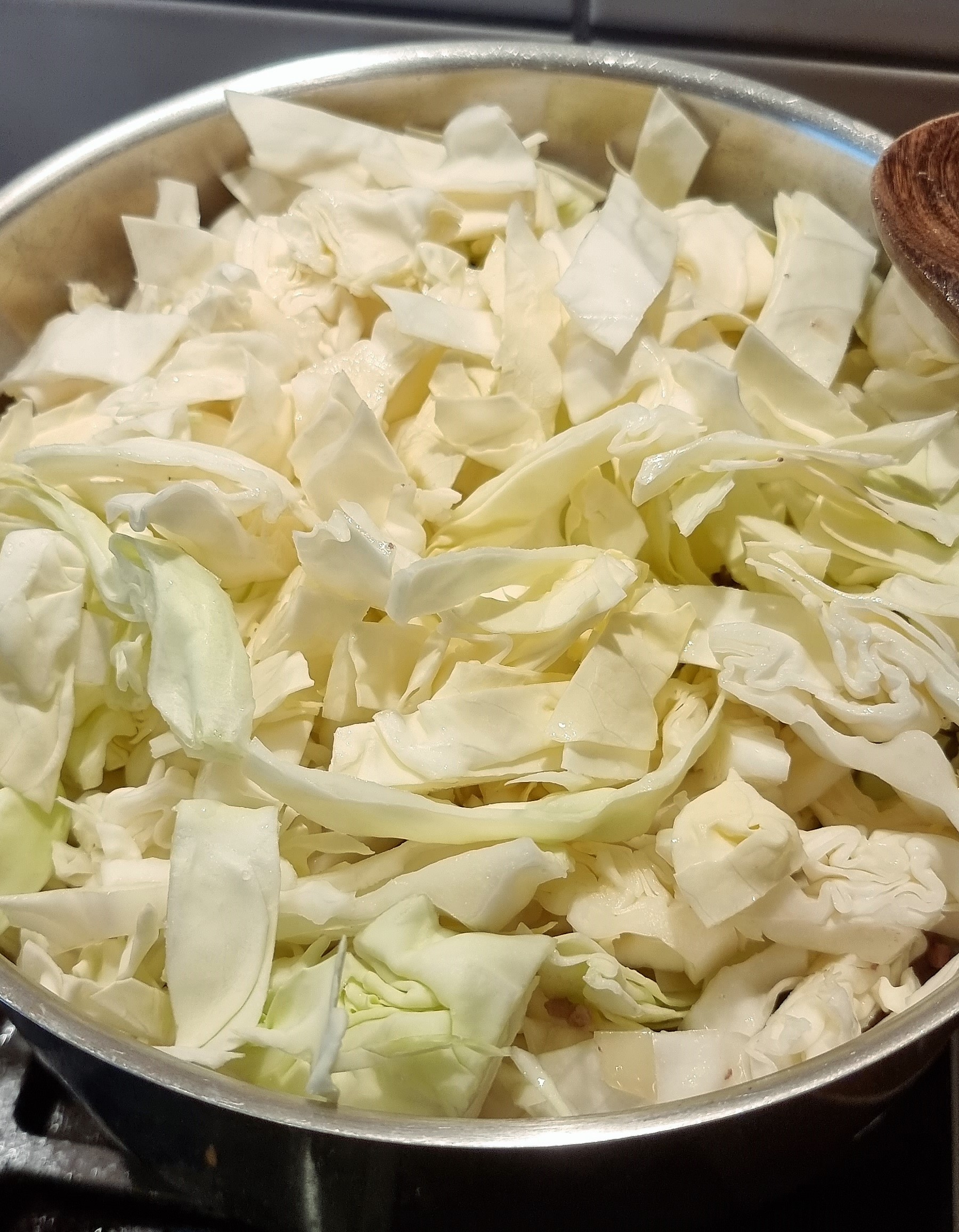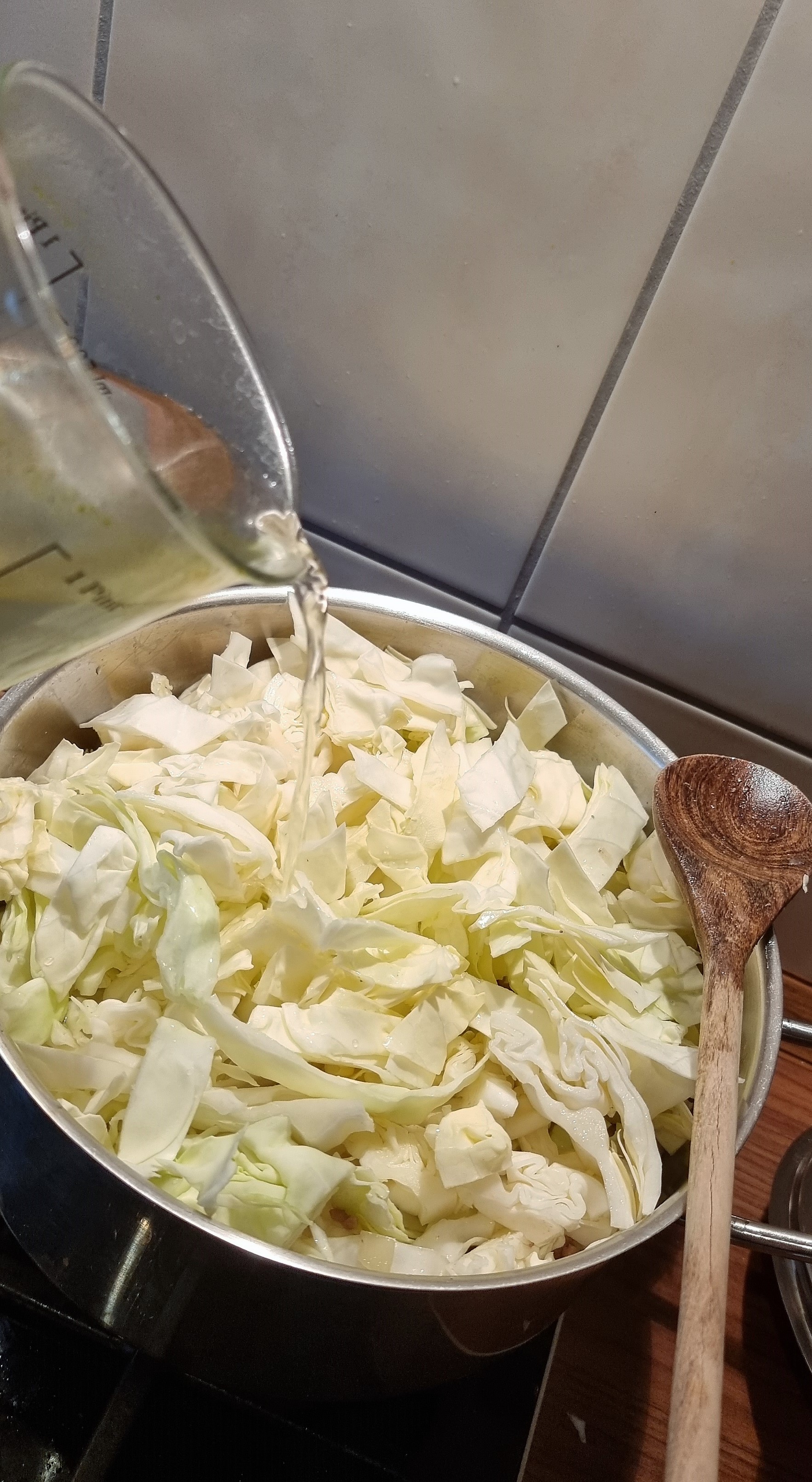 - jetzt kommt noch der klein geschnittene Spitzkohl hinzu und 500 ml Wasser